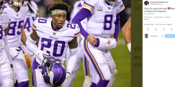 Jeff Gladney Information. Die franchise bestätigte den tod des cornerbacks, . Jeff gladney im trikot der minnesota vikings.